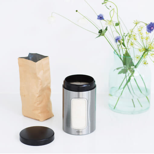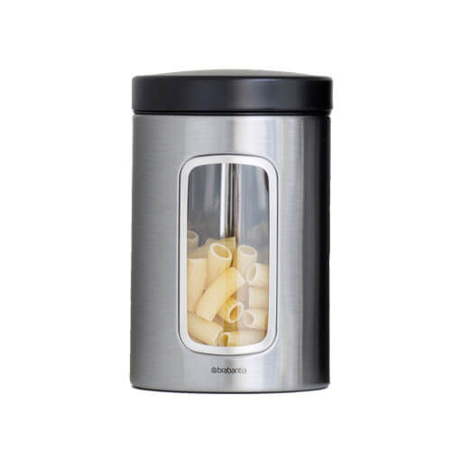 Шукаєте зручний і естетичний варіант для зберігання кави, чаю, цукру та інших продуктів? Пропонуємо ідеальне рішення — контейнер циліндричної форми місткістю 1,4 літра для сипучих продуктів. Спеціальна кришка не пропускає запах, довго зберігаючи аромат і свіжість продуктів. Прозоре віконце з антистатичних матеріалів, завдяки якому Ви завжди знаєте, що і в якій кількості міститься в кожному контейнері. Контейнер має гладку внутрішню поверхню і легко чиститься. Виготовлений з корозійностійкої фарбованої або лакованої сталі із захисним алюмінієво-цинковим покриттям. Підставка з захисним покриттям. Контейнер вміщує 500 г кави, 1кг цукру. 10-річна гарантія Brabantia.