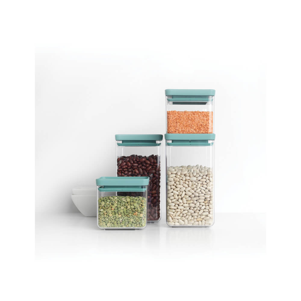 Модульна квадратна ємність для зберігання продуктів від Brabantia — це необхідний аксесуар для кожної кухні, який допоможе вам ідеально організувати простір і тримати потрібні продукти завжди під рукою. Виріб виконано з високоякісного міцного пластику, який не вбирає запахи і відмінно підійде для зберігання цукру, круп і будь-яких інших продуктів. У набір входять 4 ємності різних розмірів: 2 ємності об'ємом 0,7 літра і 2 ємності об'ємом 1,6 літра. Така різноманітність дозволить вам не тільки впорядкувати простір на кухні, але і ефектно прикрасити інтер'єр. Кришка особливої конструкції дозволяє щільно закривати банку, запобігаючи розсипання вмісту.