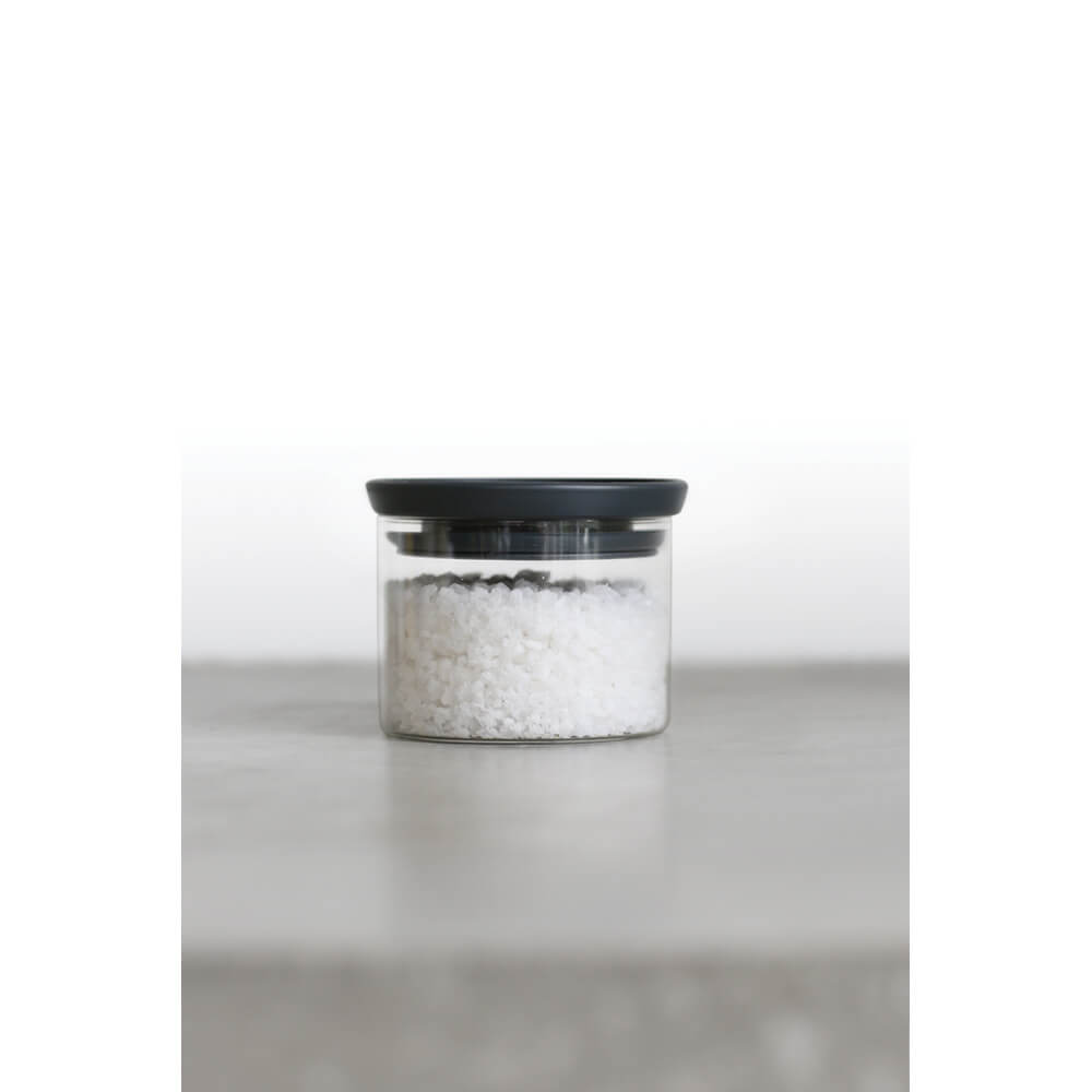 Модульна ємність для зберігання сипучих продуктів Brabantia допоможе вам навести порядок на кухні і запросто знаходити потрібні інгредієнти. Скляна банка не вбирає аромати і легко миється навіть в посудомийній машині. Кришка з пластику щільно прилягає до скла, що створює вакуум, за рахунок цього аромат і смак вмісту буде зберігатися довше. Дизайн модульних банок дозволяє ставити одну ємність на іншу, економити місце на полицях і надійно зберігати крупи, цукор, макарони та інші сипучі продукти. Об'єм ємності — 0,3 л.