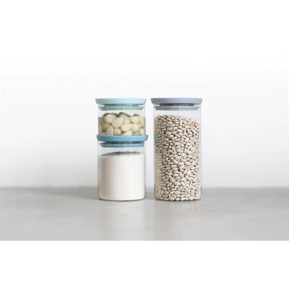 Набір модульних ємностей для зберігання сипучих продуктів Brabantia допоможе вам навести порядок на кухні і запросто знаходити потрібні інгредієнти. Скляні банки не вбирають аромати і легко миються навіть в посудомийній машині. Кришка з пластику щільно прилягає до скла, що створює вакуум, за рахунок цього аромат і смак вмісту буде зберігатися довше. Дизайн модульних банок дозволяє ставити одну ємність на іншу, економити місце на полицях і надійно зберігати крупи, цукор, макарони та інші сипучі продукти. Об'єм ємностей - 0,3 / 0,7 / 1 л..