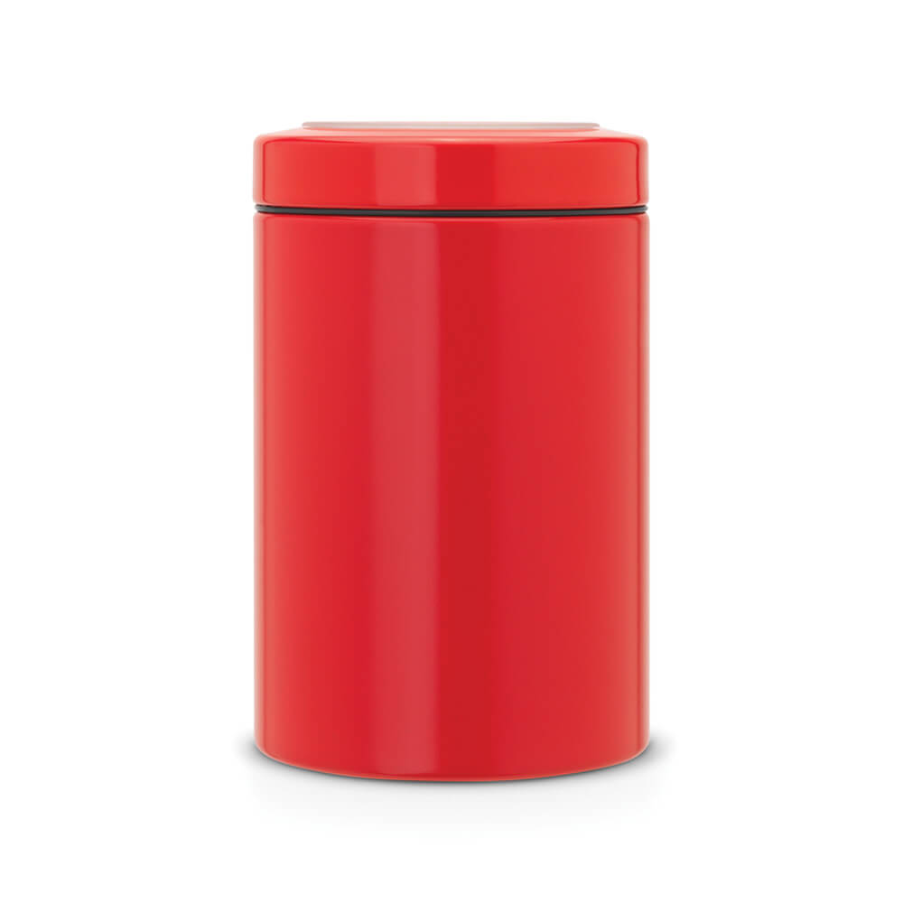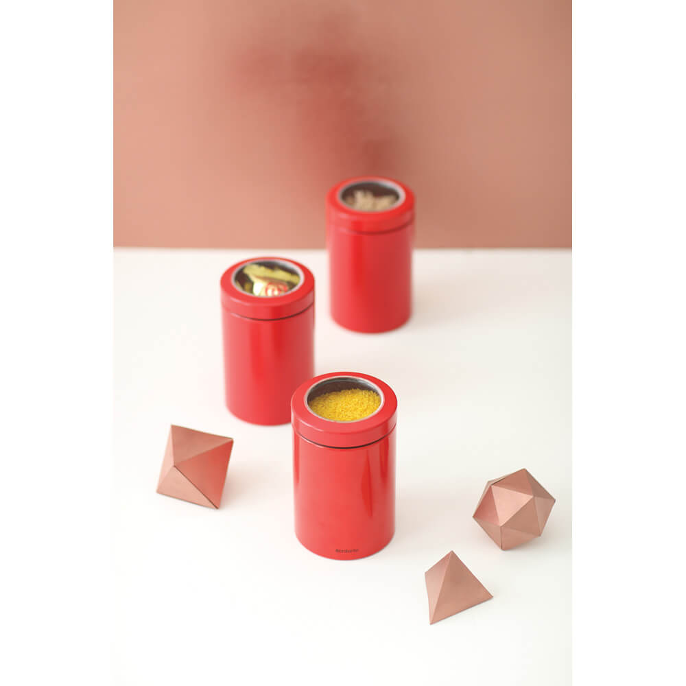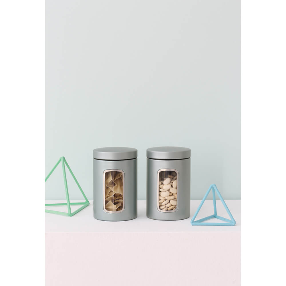 Шукаєте зручний і естетичний варіант для зберігання кави, чаю, цукру та інших продуктів? Пропонуємо ідеальне рішення — контейнер циліндричної форми місткістю 1,4 літра для сипучих продуктів. Спеціальна кришка не пропускає запах, довго зберігаючи аромат і свіжість продуктів. Прозоре віконце з антистатичних матеріалів, завдяки якому Ви завжди знаєте, що і в якій кількості міститься в кожному контейнері. Контейнер має гладку внутрішню поверхню і легко чиститься. Виготовлений з корозійностійкої фарбованої або лакованої сталі із захисним алюмінієво-цинковим покриттям. Підставка з захисним покриттям. Контейнер вміщує 500 г кави, 1кг цукру. 10-річна гарантія Brabantia.