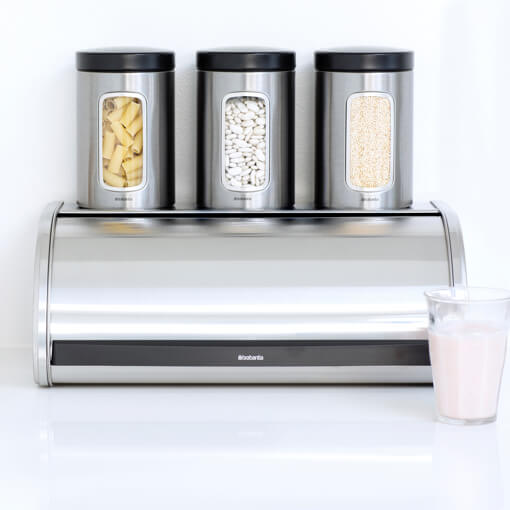 Організувати ідеальний порядок в кухонних шафках сучасної господині допоможе набір контейнерів для зберігання сипучих продуктів від Brabantia. Три практичні та зручні ємності унікальні тим, що мають невеликі віконця, завдяки яким ви завжди будете бачити, що і в якій кількості міститься в банку. Антистатична поверхня запобігає прилипання сипучих продуктів до внутрішньої частини віконця. Спеціальна замикається кришка не пропускає запах, довго зберігаючи аромат і свіжість продуктів. Контейнер виготовлений з антикорозійного сталі із захисним алюмінієво-цинковим покриттям і легко чиститься завдяки гладкій внутрішній поверхні. Контейнер Brabantia об'ємом 1,4 л вміщує 500 г кави або 1 кг цукру. Підстава з захисним покриттям. 10-річна гарантія Brabantia.
