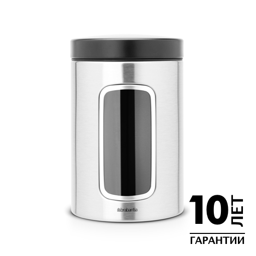 Шукаєте зручний і естетичний варіант для зберігання кави, чаю, цукру та інших продуктів? Пропонуємо ідеальне рішення — контейнер циліндричної форми місткістю 1,4 літра для сипучих продуктів. Спеціальна кришка не пропускає запах, довго зберігаючи аромат і свіжість продуктів. Прозоре віконце з антистатичних матеріалів, завдяки якому Ви завжди знаєте, що і в якій кількості міститься в кожному контейнері. Контейнер має гладку внутрішню поверхню і легко чиститься. Виготовлений з корозійностійкої фарбованої або лакованої сталі із захисним алюмінієво-цинковим покриттям. Підставка з захисним покриттям. Контейнер вміщує 500 г кави, 1кг цукру. 10-річна гарантія Brabantia.